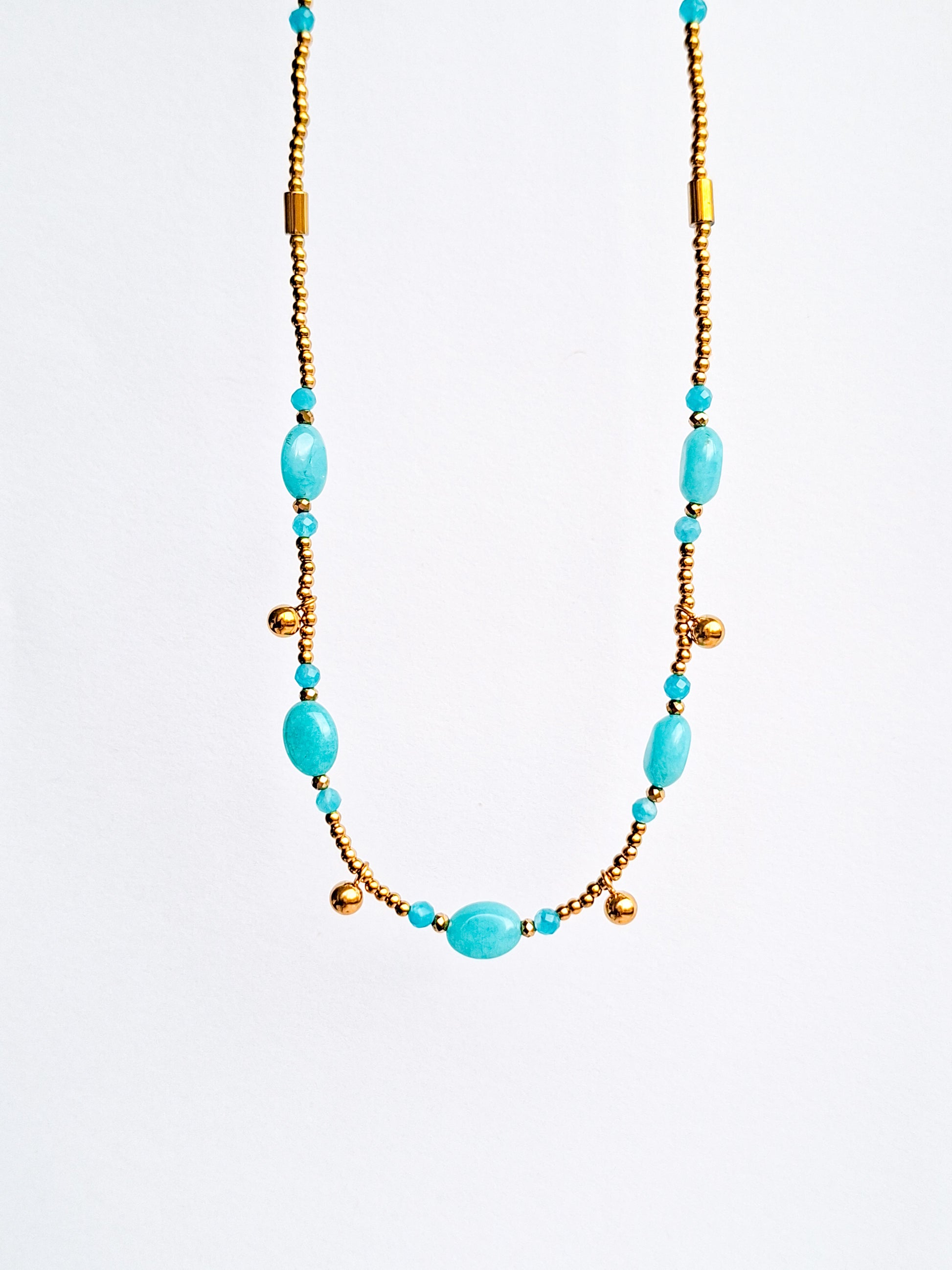 Bohemian kralen ketting van stainless steel en edelsteen. Met de hand gemaakt in ons atelier. We gebruiken duurzame materialen die niet verkleuren zodat onze sieraden voor altijd mooi blijven. Je kunt kiezen uit verschillende soorten edelsteen met allemaal een eigen betekenis. Een mooi persoonlijk en betekenisvol cadeau die voor altijd mee gaat, voor jezelf of iemand anders.