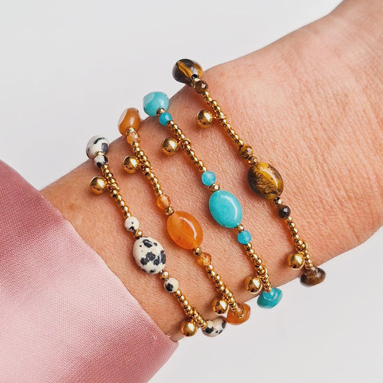 Bohemian kralen armband van stainless steel met edelsteen. Met de hand gemaakt in ons atelier. We gebruiken duurzame materialen die niet verkleuren zodat onze sieraden voor altijd mooi blijven.
