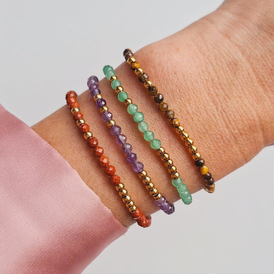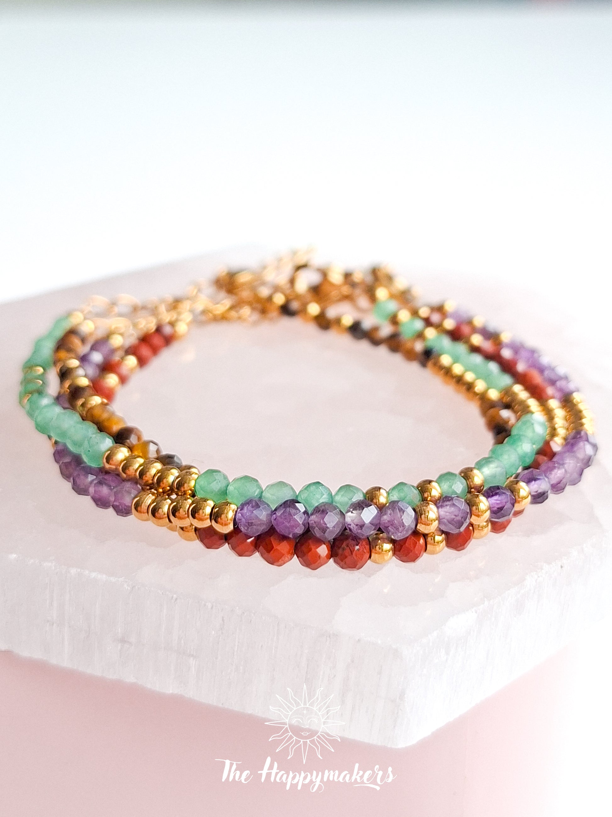 Bohemian kralen armband van stainless steel met edelsteen. Met de hand gemaakt in ons atelier. We gebruiken duurzame materialen die niet verkleuren zodat onze sieraden voor altijd mooi blijven.