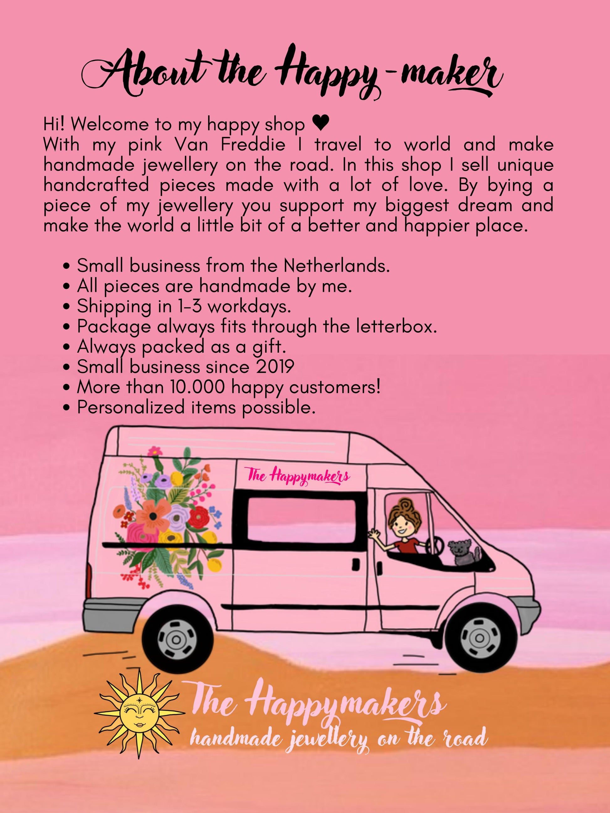 ☾✧Al reizend door Europa in mijn roze busje is deze nieuwe collectie ontstaan. Een collectie die nog beter aansluit bij onze visie & missie. Unieke stukjes kunst die je elke dag kunt dragen en die voor altijd mooi blijven. Alles wordt door mijzelf ontworpen en gemaakt. Er wordt gebruik gemaakt van hoogwaardige materialen van de beste kwaliteit en daardoor is onze nieuwe collectie 100% waterproof.☾✧