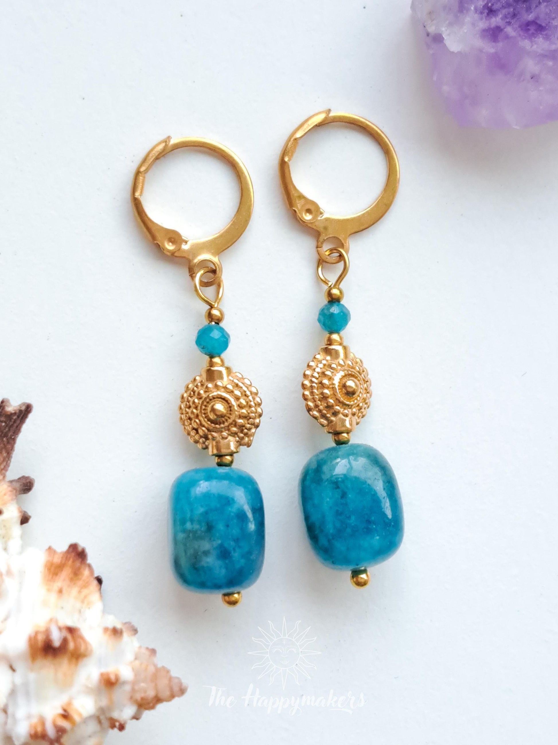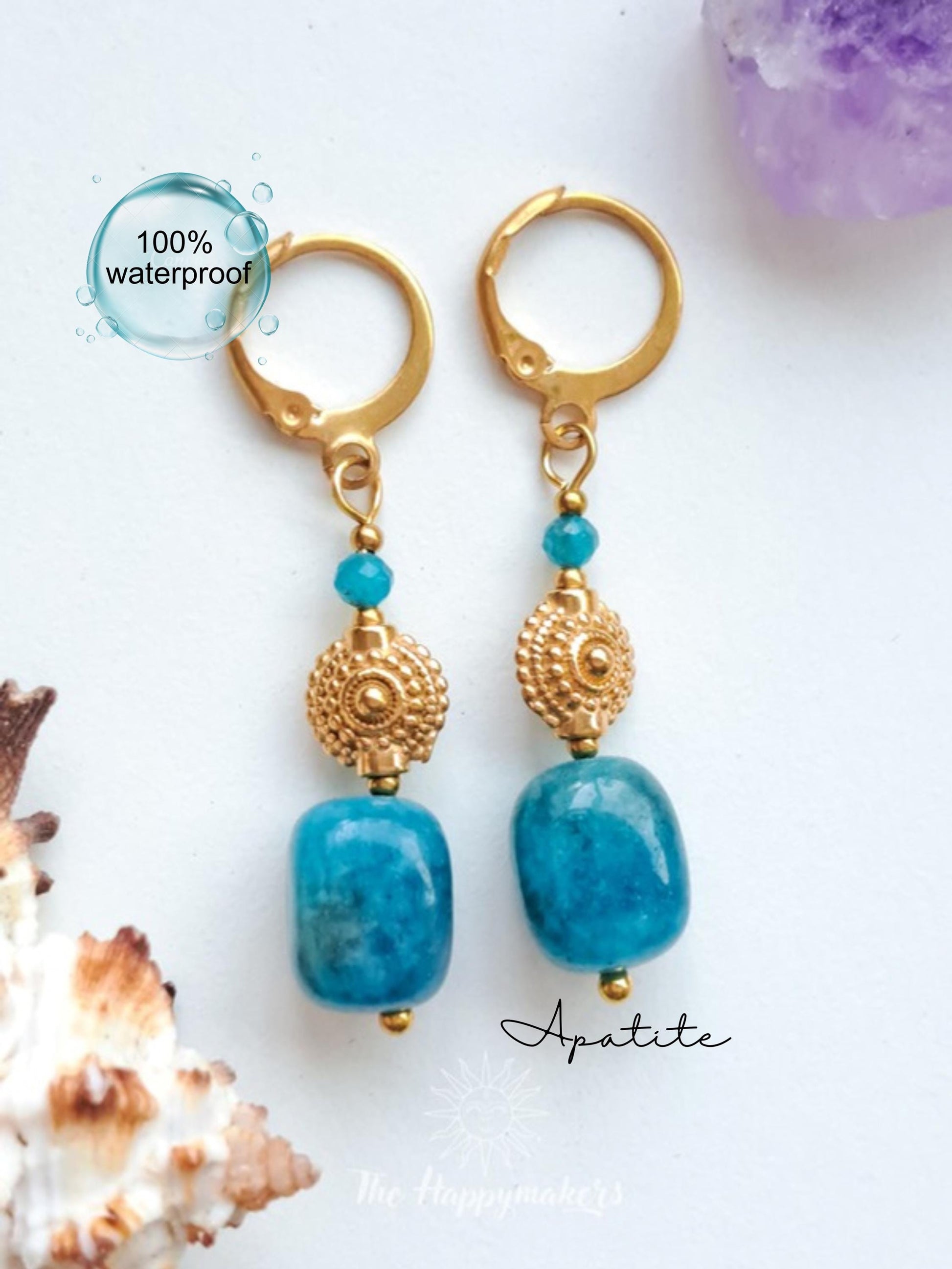 Edelsteen oorbellen, stainless steel, apatiet, 100% waterproof, little hoops, bedeloorbellen, handgemaakt