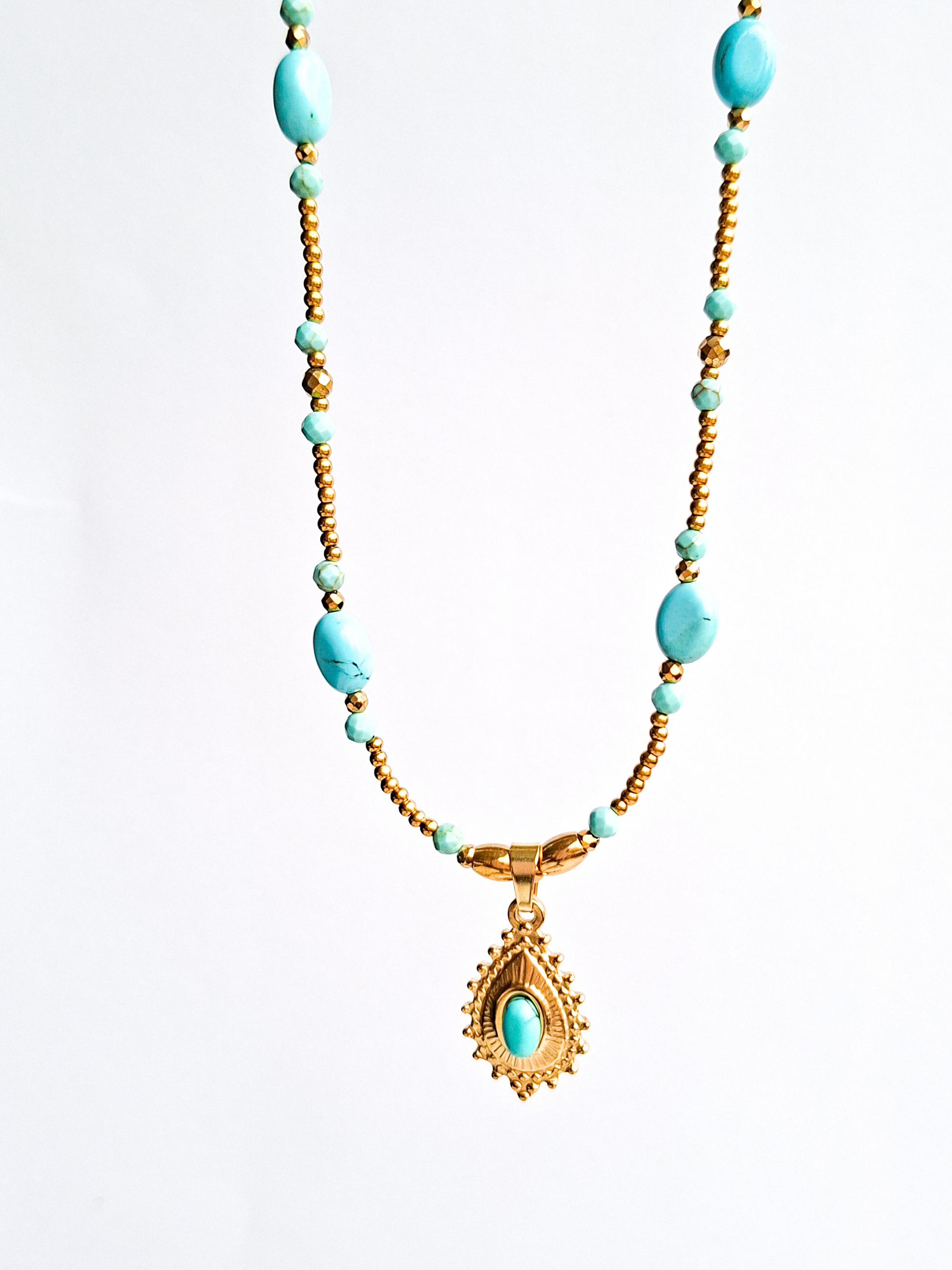 Bohemian kralen ketting van stainless steel en edelsteen. Met de hand gemaakt in ons atelier. We gebruiken duurzame materialen die niet verkleuren zodat onze sieraden voor altijd mooi blijven. Je kunt kiezen uit verschillende soorten edelsteen met allemaal een eigen betekenis. Een mooi persoonlijk en betekenisvol cadeau die voor altijd mee gaat, voor jezelf of iemand anders.