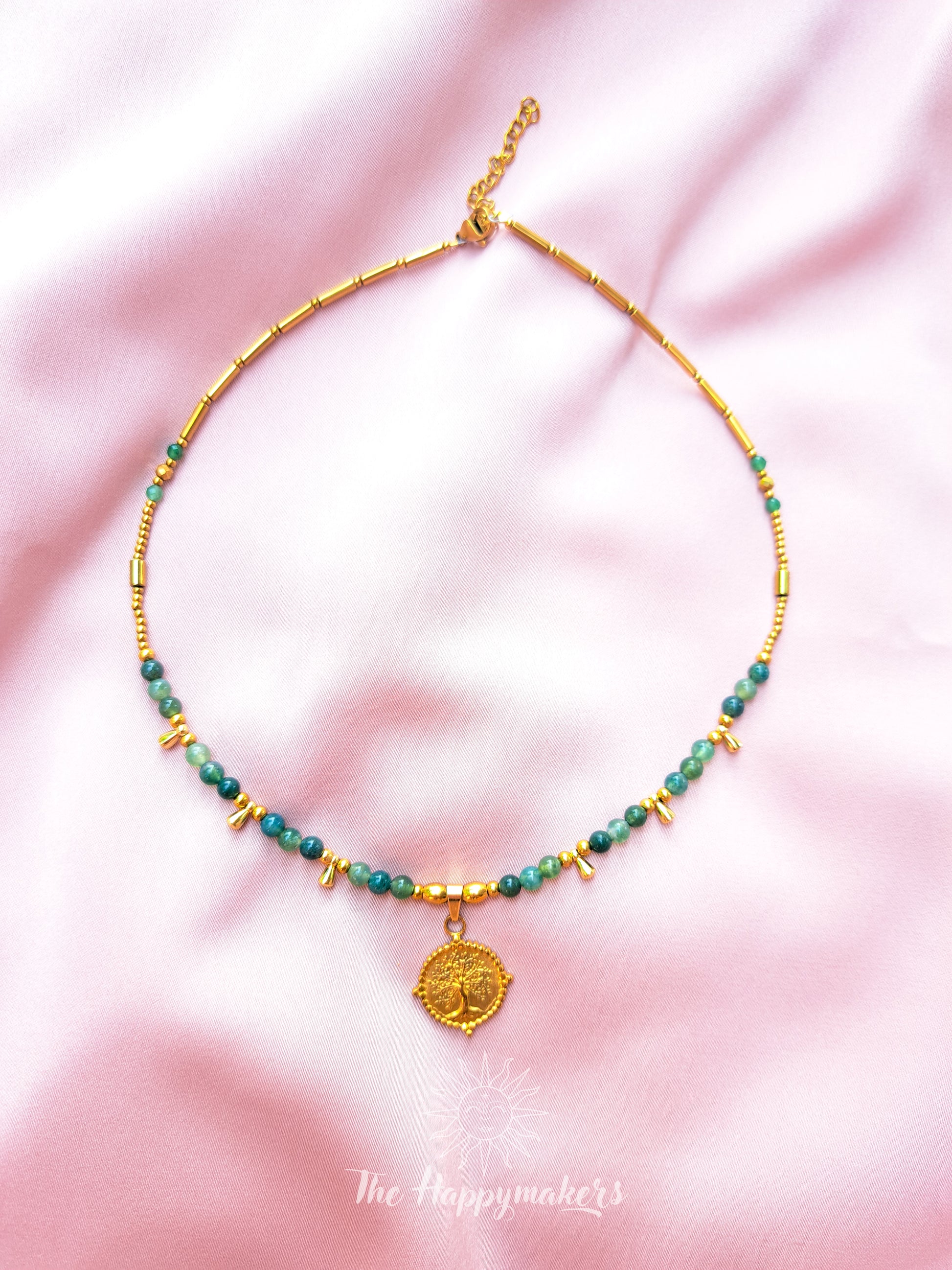 Bohemian kralen ketting van stainless steel en edelsteen. Met de hand gemaakt in ons atelier. We gebruiken duurzame materialen die niet verkleuren zodat onze sieraden voor altijd mooi blijven. Je kunt kiezen uit verschillende soorten edelsteen met allemaal een eigen betekenis. Een mooi persoonlijk en betekenisvol cadeau die voor altijd mee gaat, voor jezelf of iemand anders.