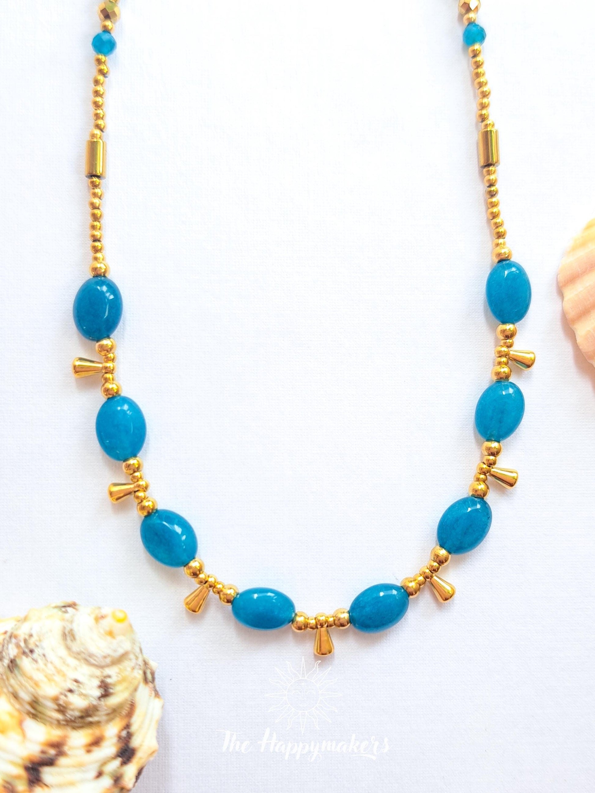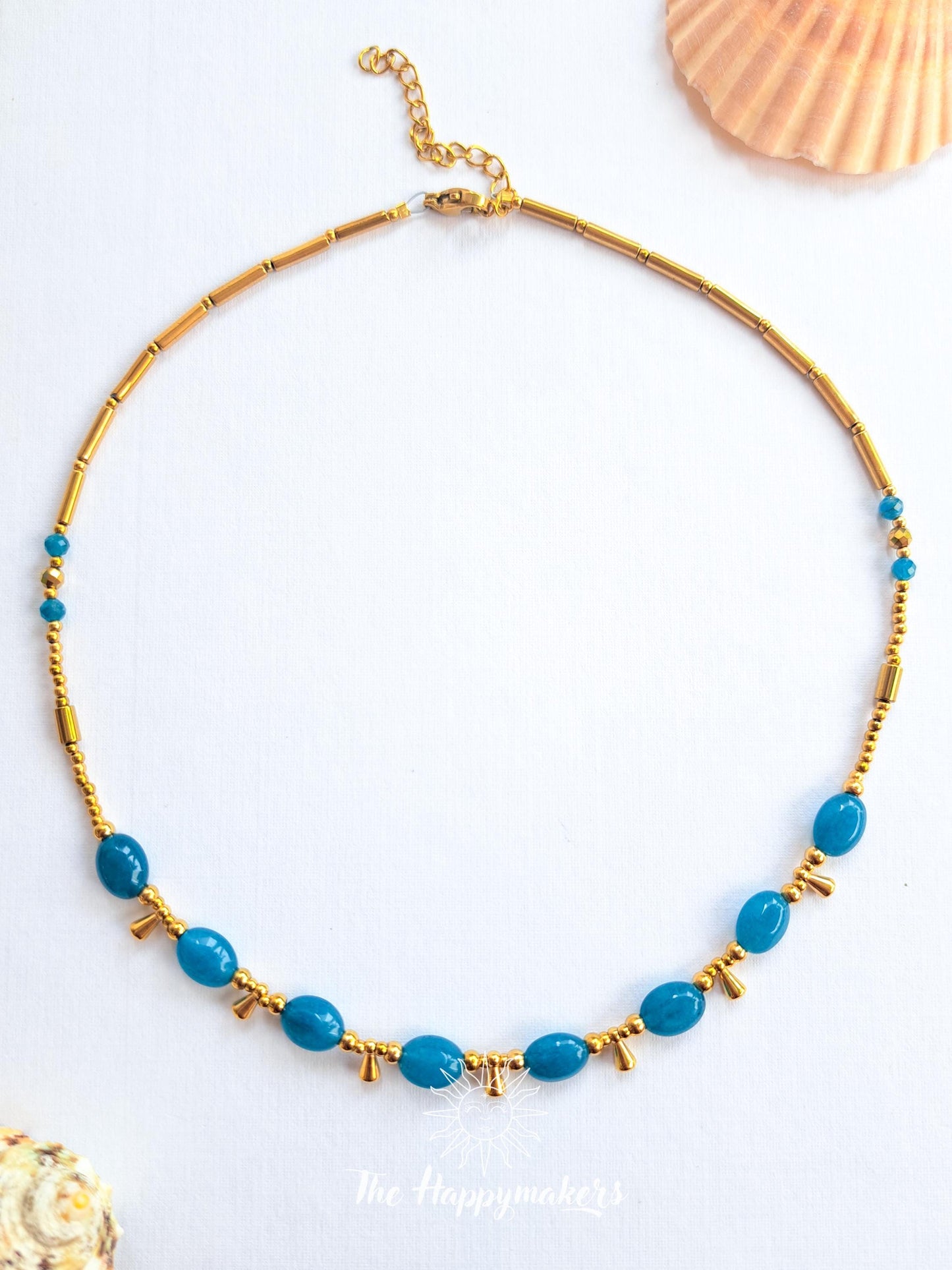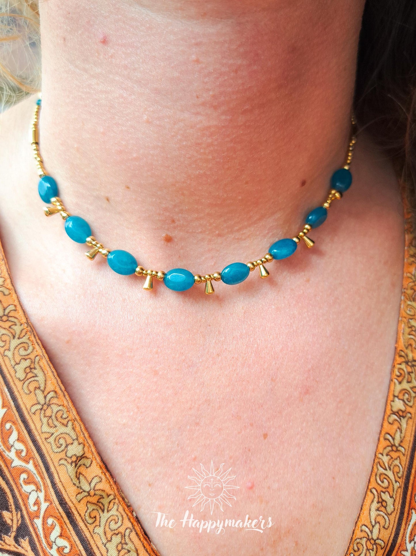 Kralen ketting boho met edelsteen, apatiet, stainless steel, waterproof, handgemaakt, zelfvertrouwen, geschenk met betekenis