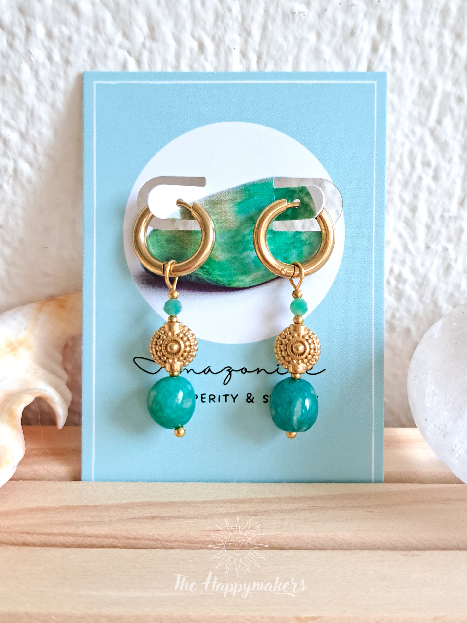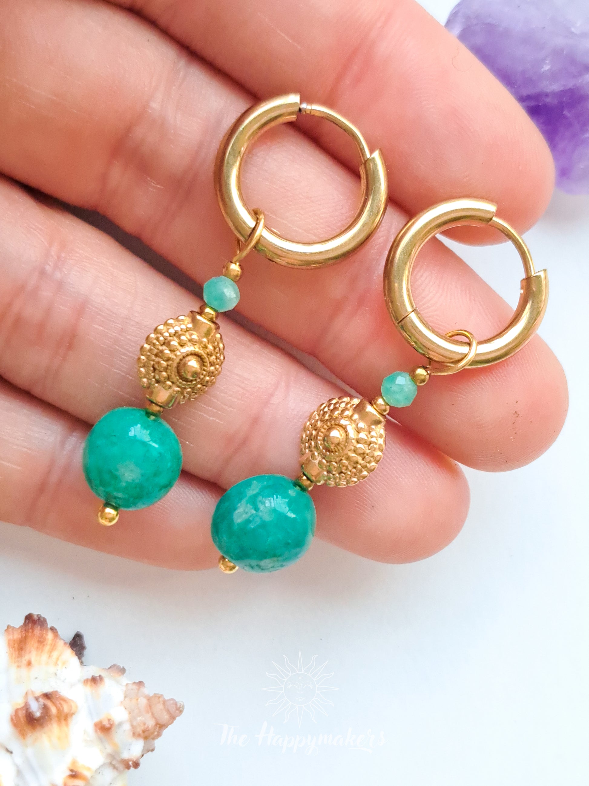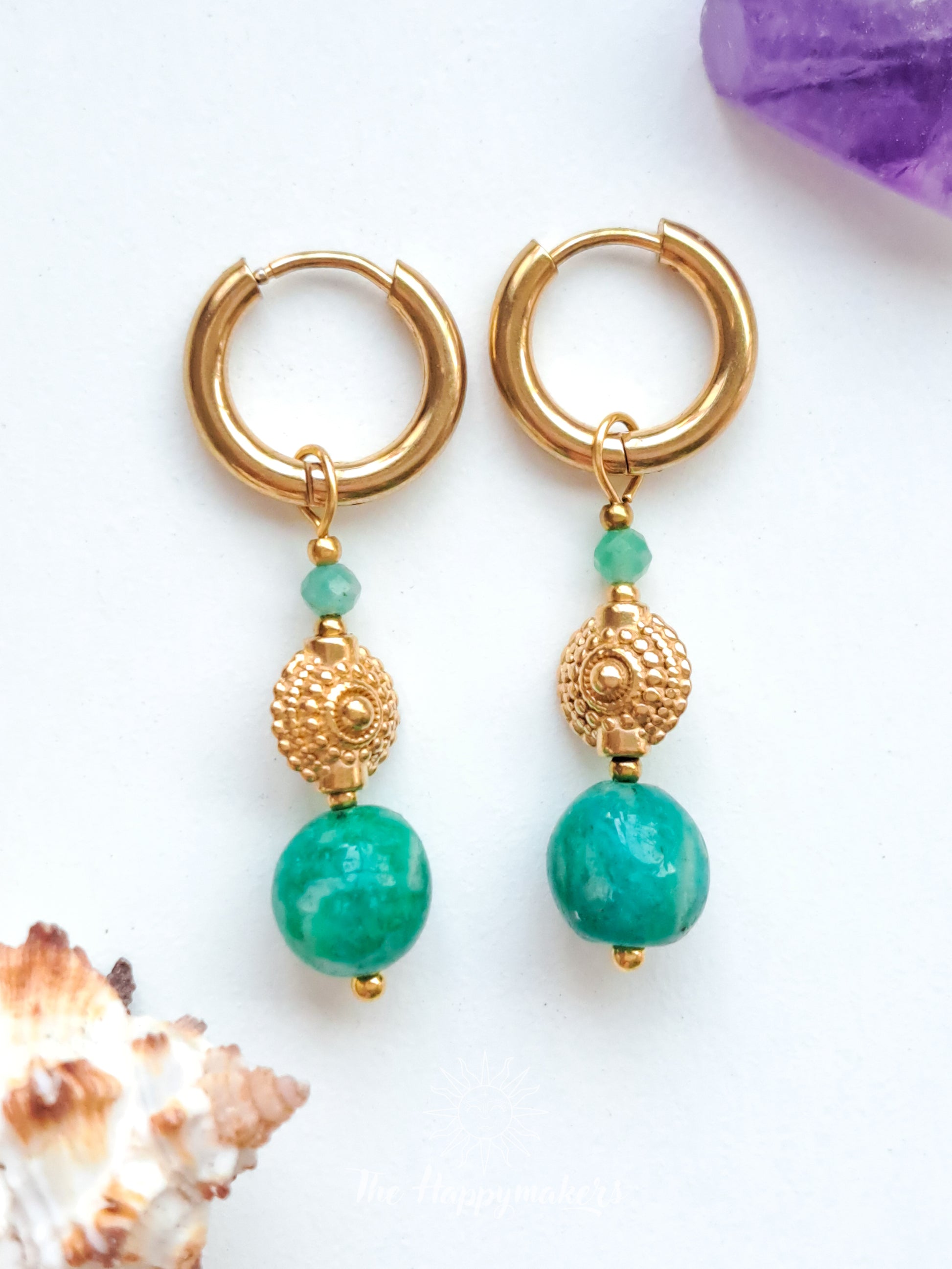 Bohemian oorbellen van stainless steel met edelsteen. Met de hand gemaakt in ons atelier. We gebruiken duurzame materialen die niet verkleuren zodat onze sieraden voor altijd mooi blijven.