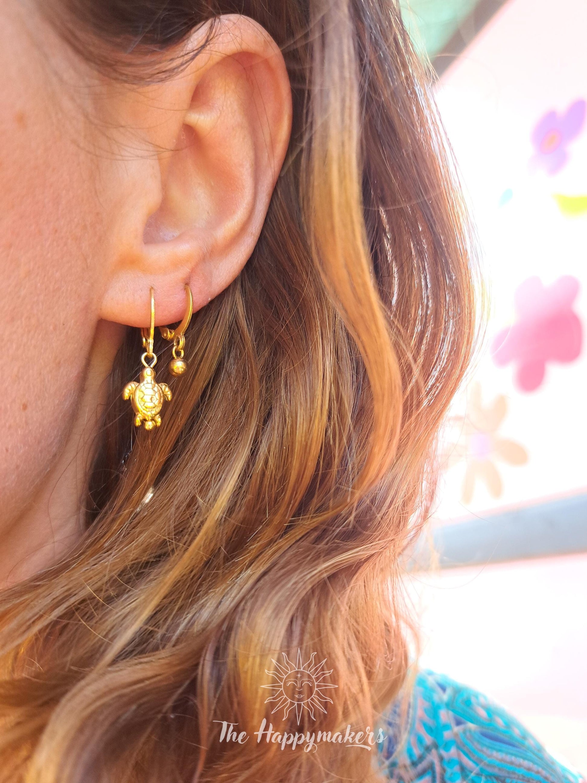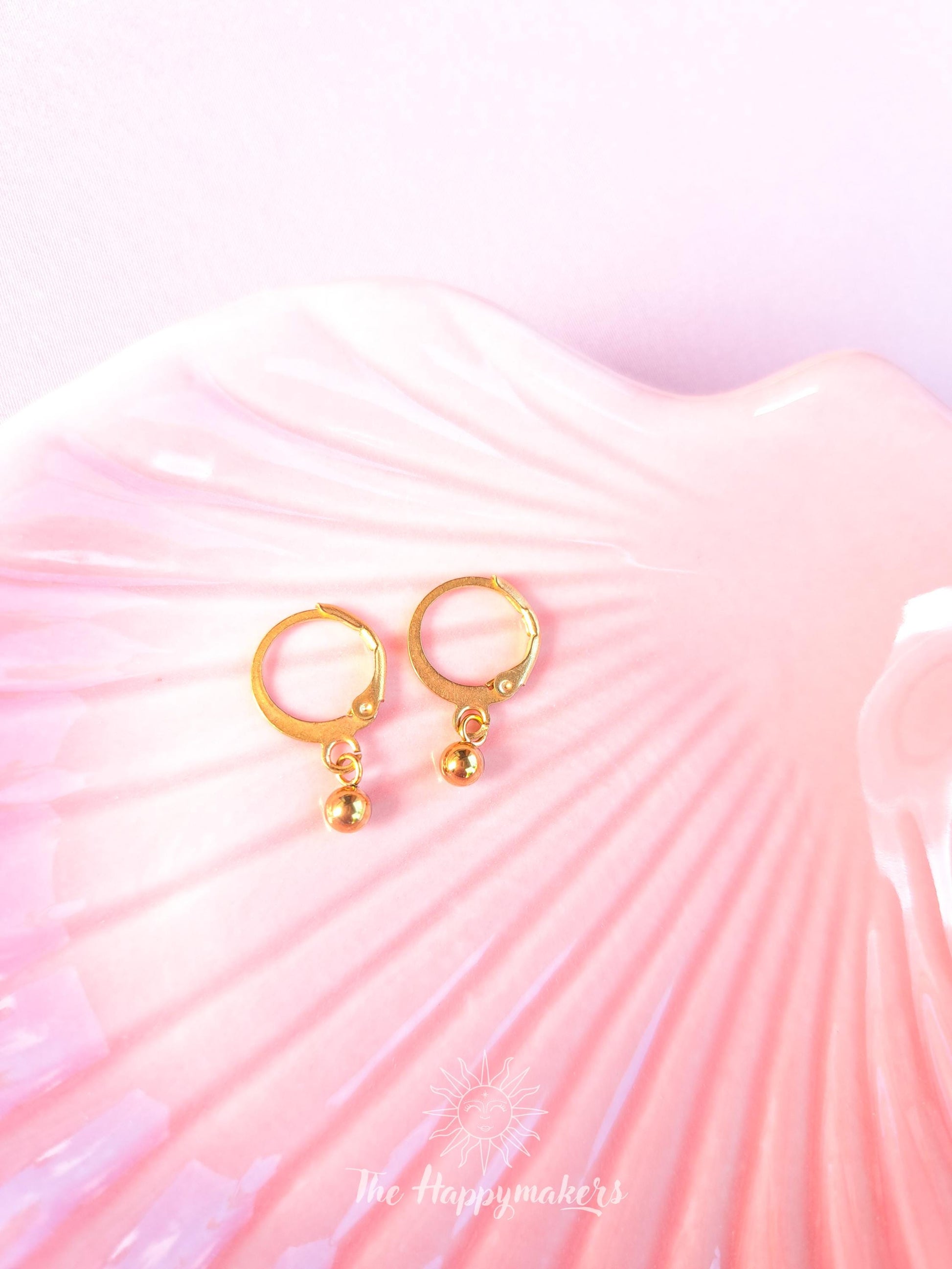 Oorbellen stainless steel, bedeloorbellen, 100% waterproof, boho, goud ''little ball''