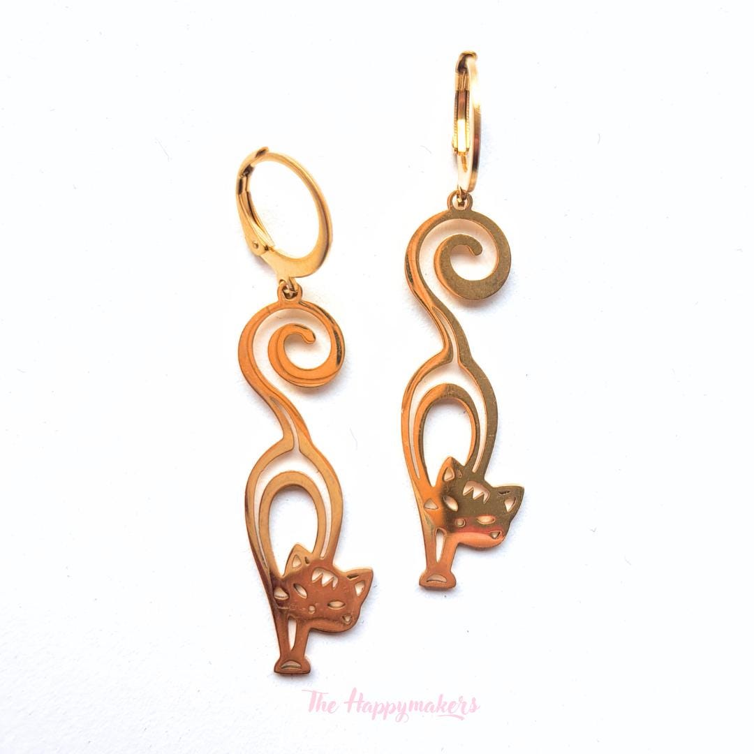 Oorbellen stainless steel, boho, bedeloorbellen, statement oorbellen, cats, goud of zilver