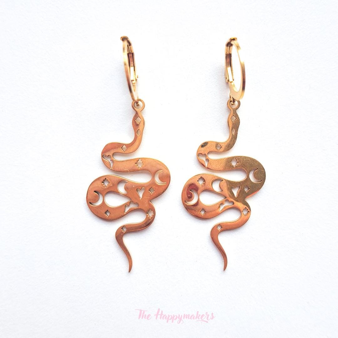 Oorbellen stainless steel, boho, bedeloorbellen, statement oorbellen, slang, goud of zilver